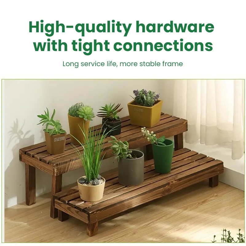 Crafted from high-temperature carbonized solid wood, this plant stand offers enhanced durability and resistance to moisture, insects, and decay. The natural wood grain adds warmth and an organic touch to your living space.