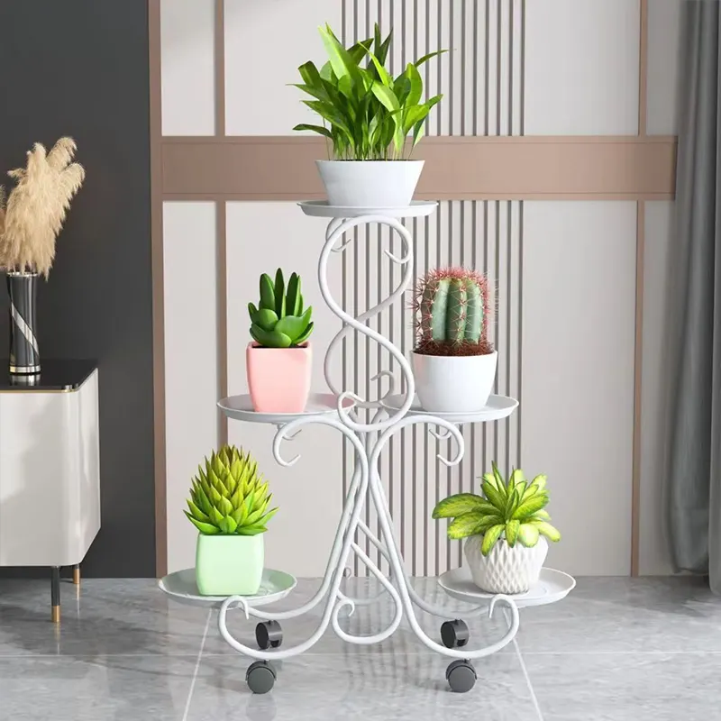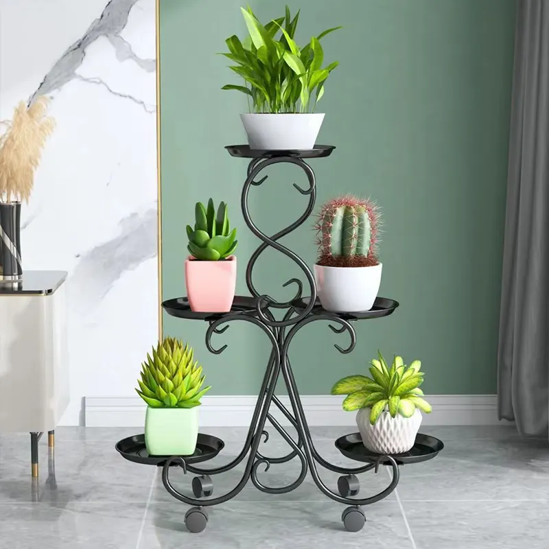 Elegant European-style iron plant stand with multi-tier design, durable structure, and space-saving layout for indoor or outdoor use.