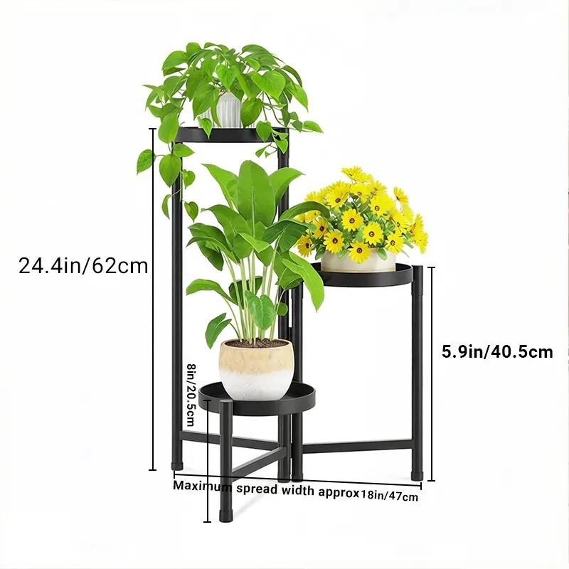 Designed to fit neatly into corners, this three-tier stand maximizes vertical space while minimizing floor usage. It’s ideal for small apartments, balconies, or any area where space efficiency matters.