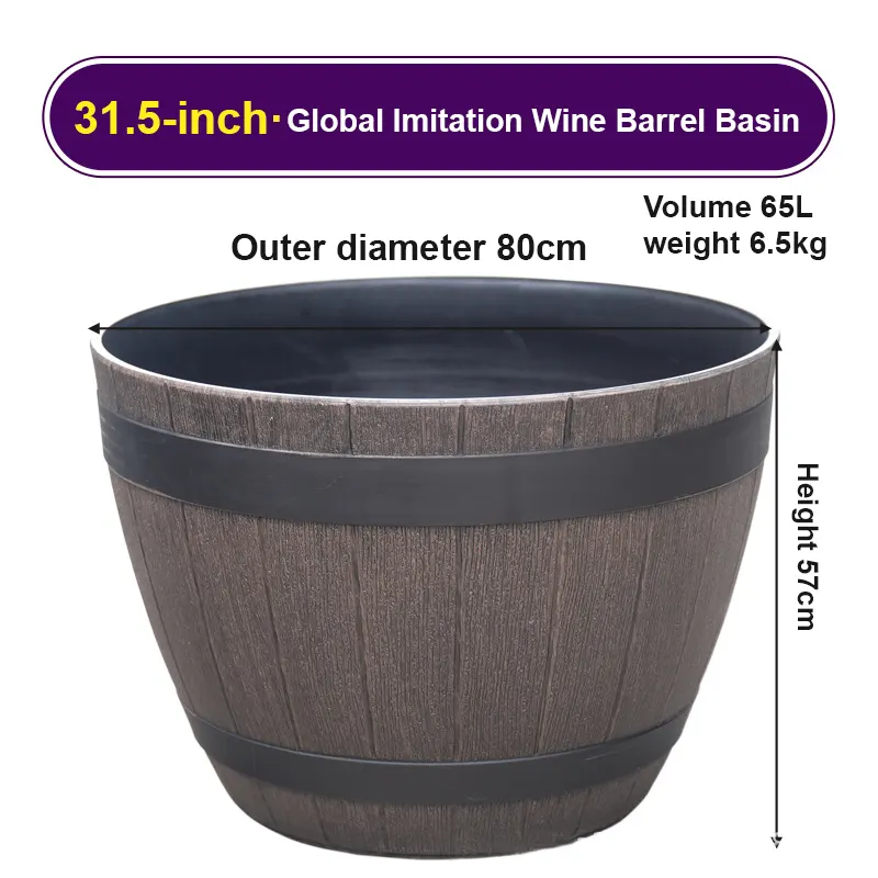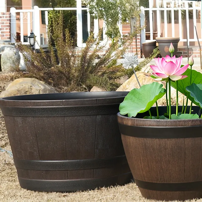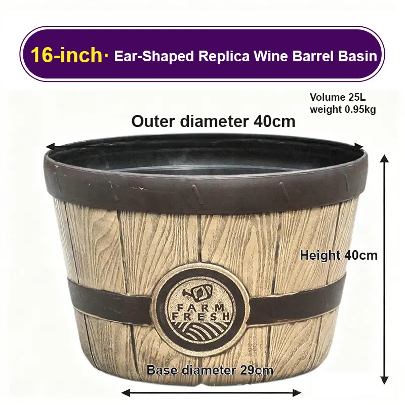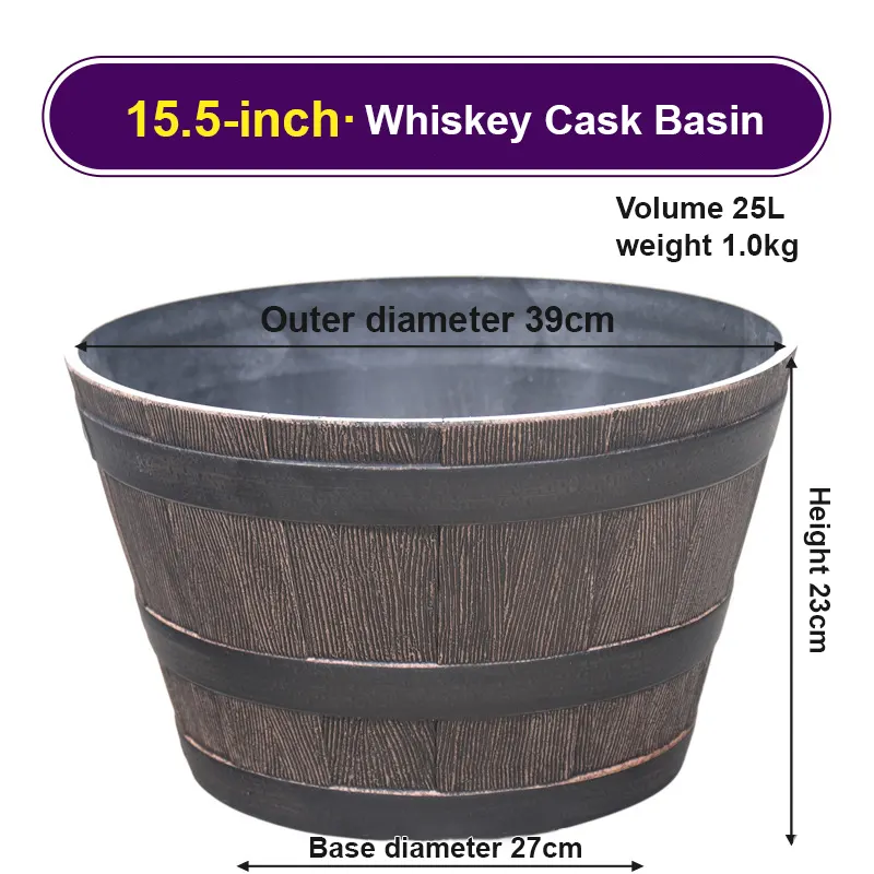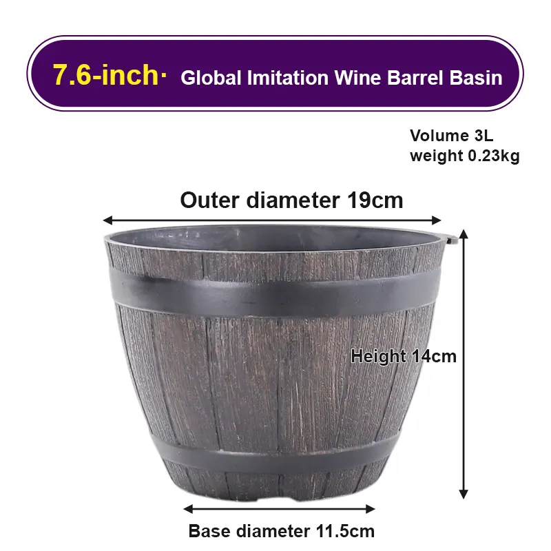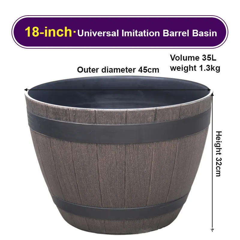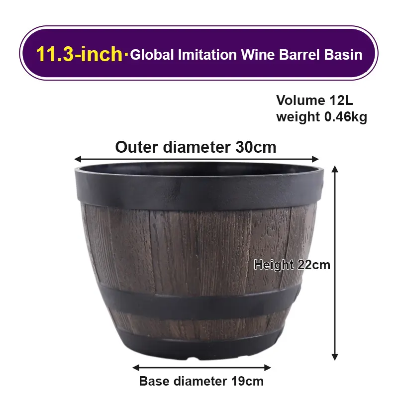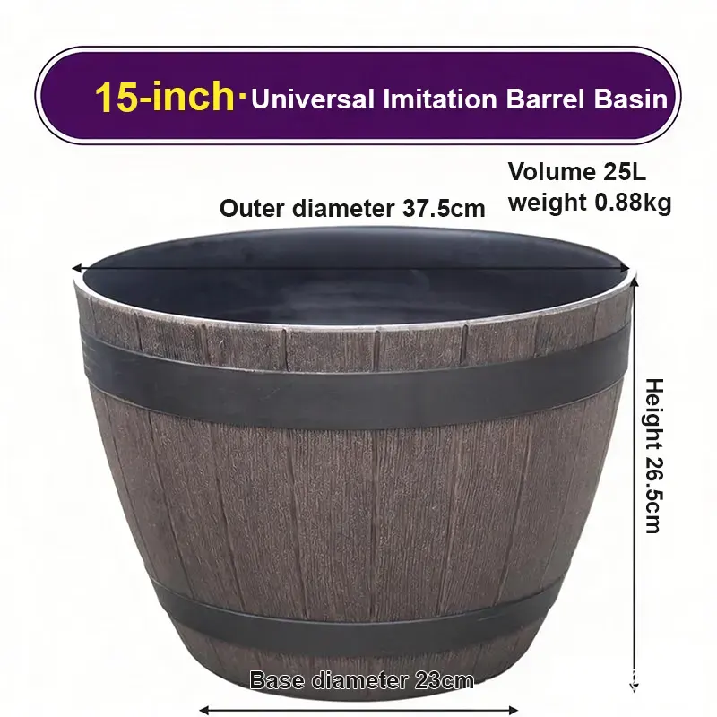 Featuring a realistic wood-grain barrel appearance, this planter blends rustic charm with practical functionality. The vintage-inspired design enhances gardens, balconies, and patios while creating a peaceful countryside atmosphere.