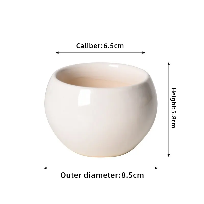 Mini round ceramic planter, smooth edges, drainage hole, elegant design, ideal for succulents or small indoor plants.