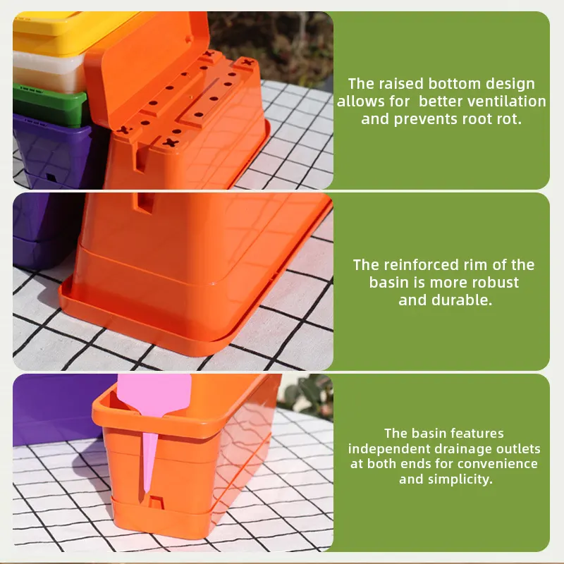 Self-watering planter box with breathable design, drainage system, and durable PP material, perfect for growing vegetables at home.