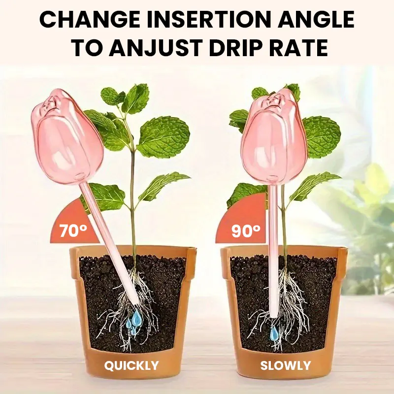 Inspired by the shape of a tulip, this watering device combines functionality with a clean, minimalist look. Its charming design adds a decorative touch to your plant pots, making it both practical and visually appealing.